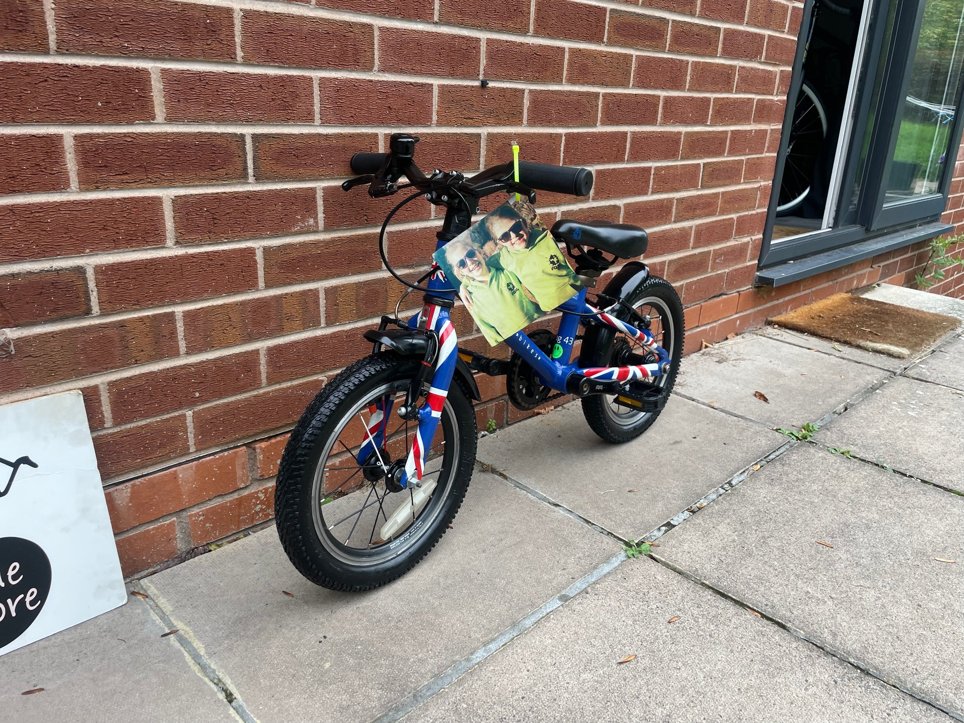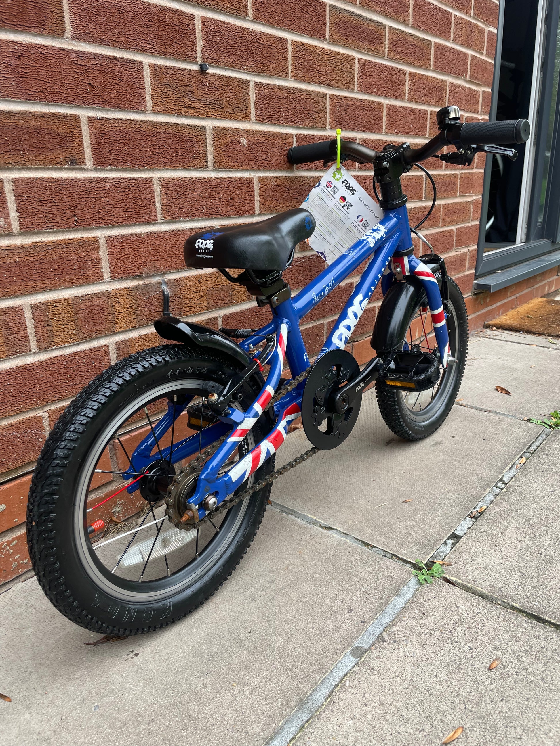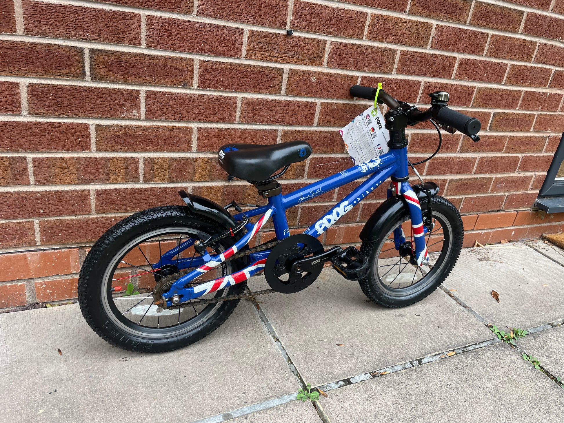 A Pre Loved Frog Bike For Sale Blue Frog 43, 14” wheels, V brakes, mudguards, very lightweight, nationwide delivery is available.