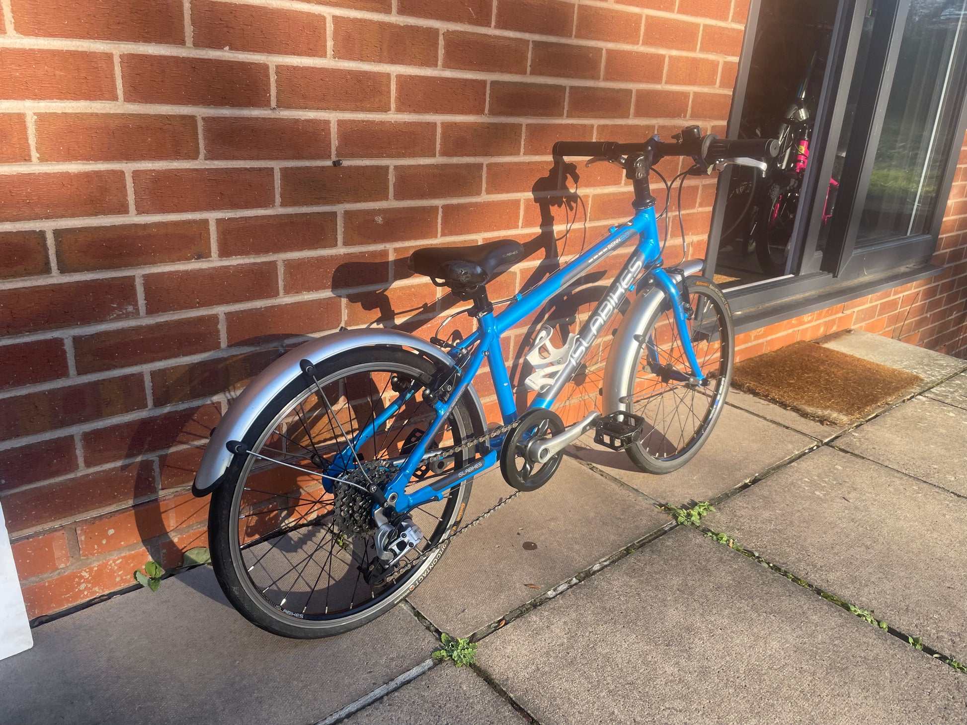 A Pre Loved Isla Bike For Sale, Blue Isla Cnoc 20L, 20β wheels, 8 speed, V brakes, mudguards, very lightweight, nationwide delivery is available or collection from our shop in Warwickshire.